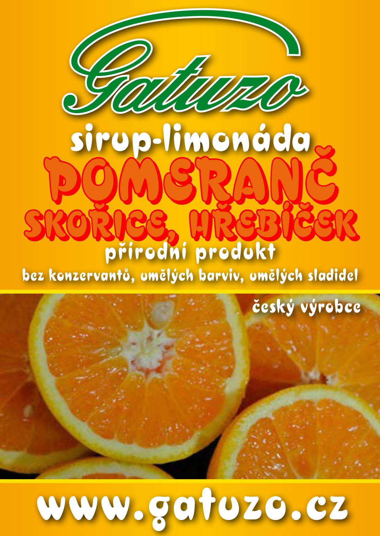 Složení: třtinový cukr 58 %, voda, pomerančový koncentrát 9,7 % (přináší 57 % ovoce), citronový koncentrát