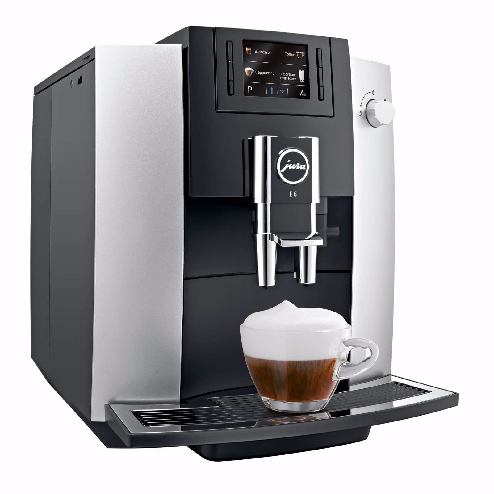 Model E6 je ideální pro všechny, kteří svoji oblíbenou kávu mají rádi rychle připravenou. Tlačítka pro espresso, kávu, cappuccino a mléčnou pěnu jsou všechna umístěna na přední straně přístroje kvůli maximálnímu pohodlí. E6 dokonce dokáže připravit dvě espressa nebo kávy současně. Díky modernímu barevnému TFT displeji je ovládání přístroje dobře srozumitelné.