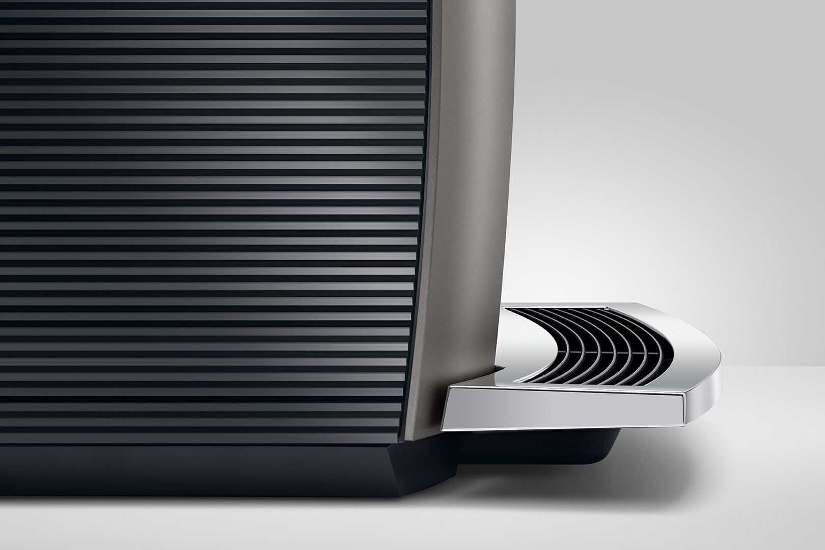 Nádržka na vodu v designu ušlechtilé drážky zdůrazňuje jasný designový jazyk. Kovová rukojeť nádržky přináší vysokou hodnotu díky na dotek příjemnému povrchu. A na novém, chromovaném podstavci šálků výborně vyniknou dokonalé kávové speciality. Potěšení pro oko.