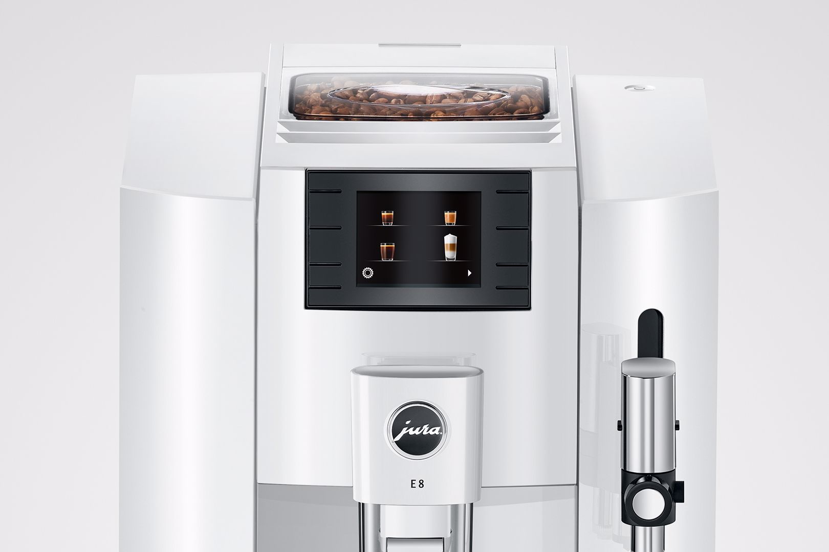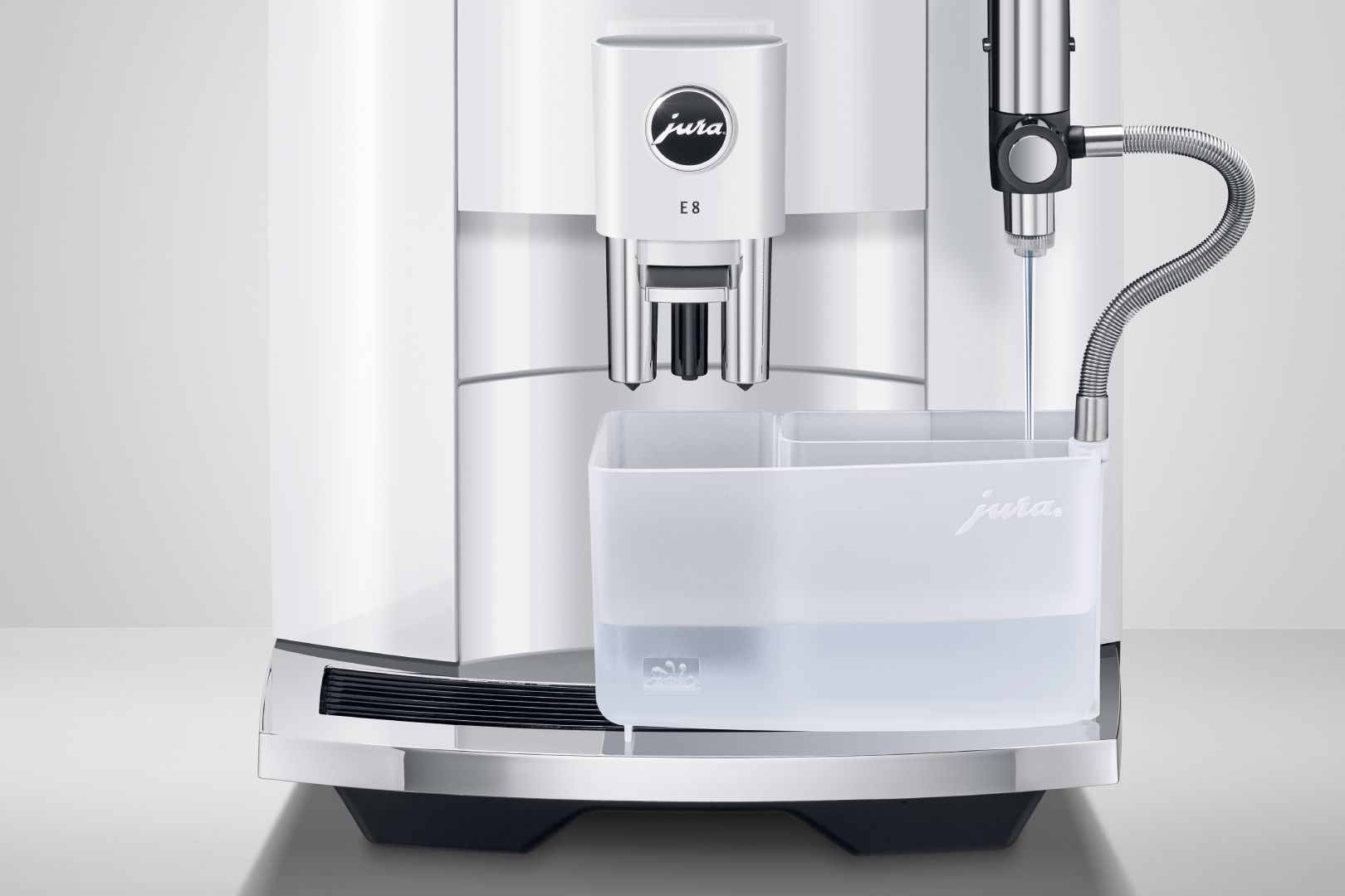 Charakteristický design automatických kávovarů JURA je jasný a výrazný. Vysoce kvalitní materiály a precizní zpracování podtrhují prémiovou kvalitu moderního kávovaru E8. Už jeho tvar je symbolem kvality, funkčnosti a dlouhé životnosti. Detaily jako nádrž na vodu s rýhami nebo vysoce kvalitní, chromovaný podstavec pro šálky dokreslují čistý a harmonický design modelu E8.