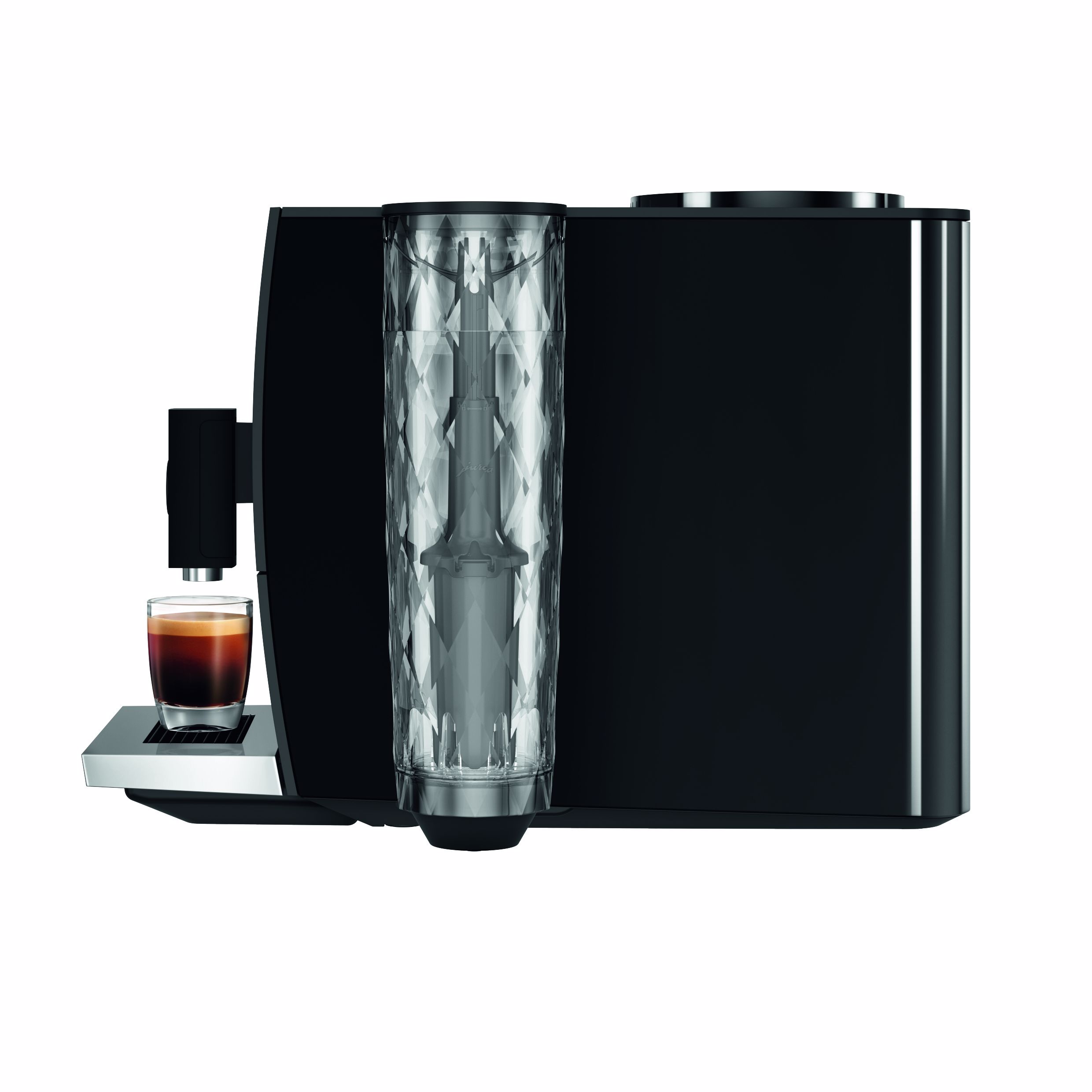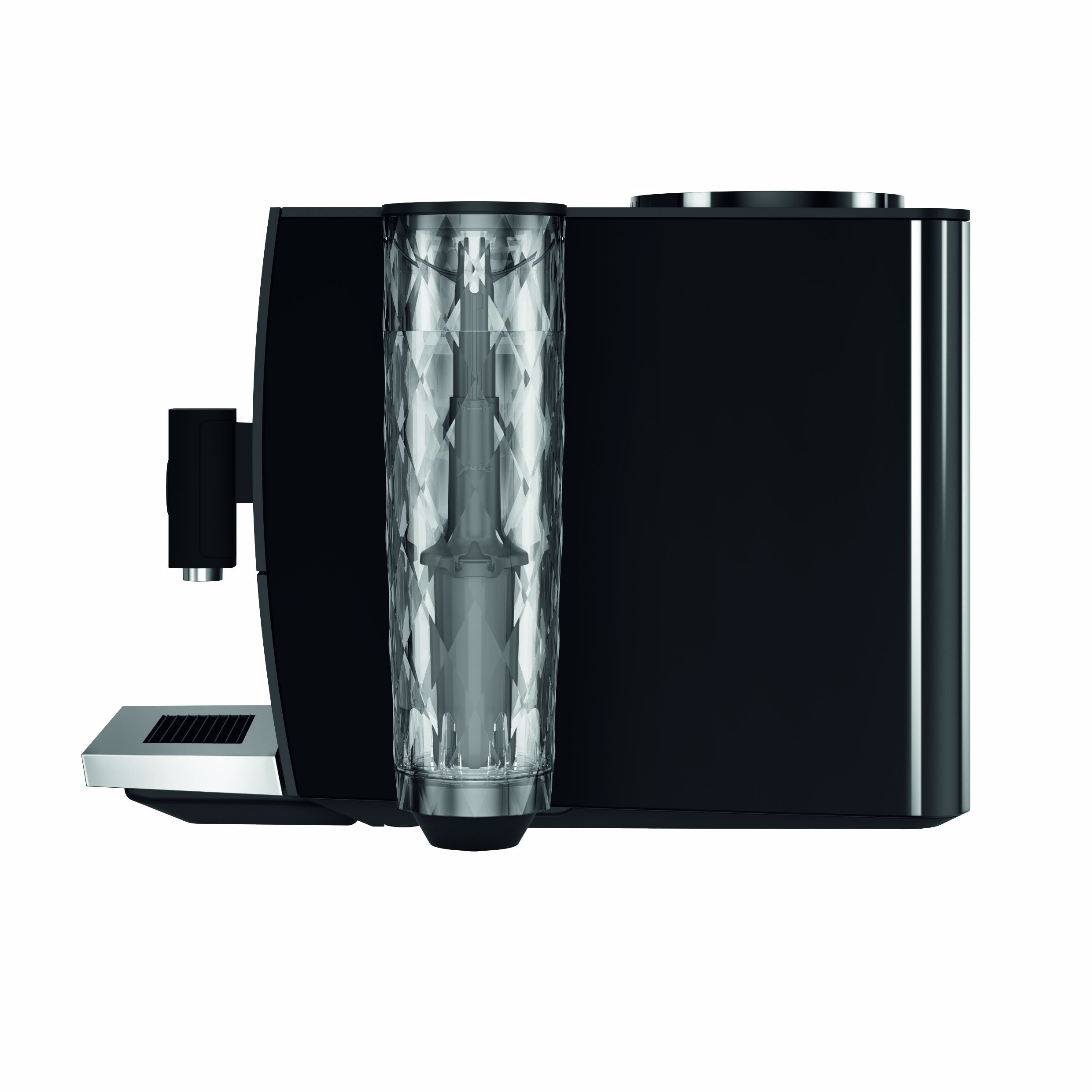 JURA ENA 4 je široká pouze 27,1 cm, vysoká 32,3 cm a hluboká 44,5 cm. Snadno ji kdekoli umístíte. Zároveň se jedná o kávovar s čistým designem. Vyznačuje se jednoduchou elegancí a válcovitou nádržkou na vodu s diamantovým vzhledem.