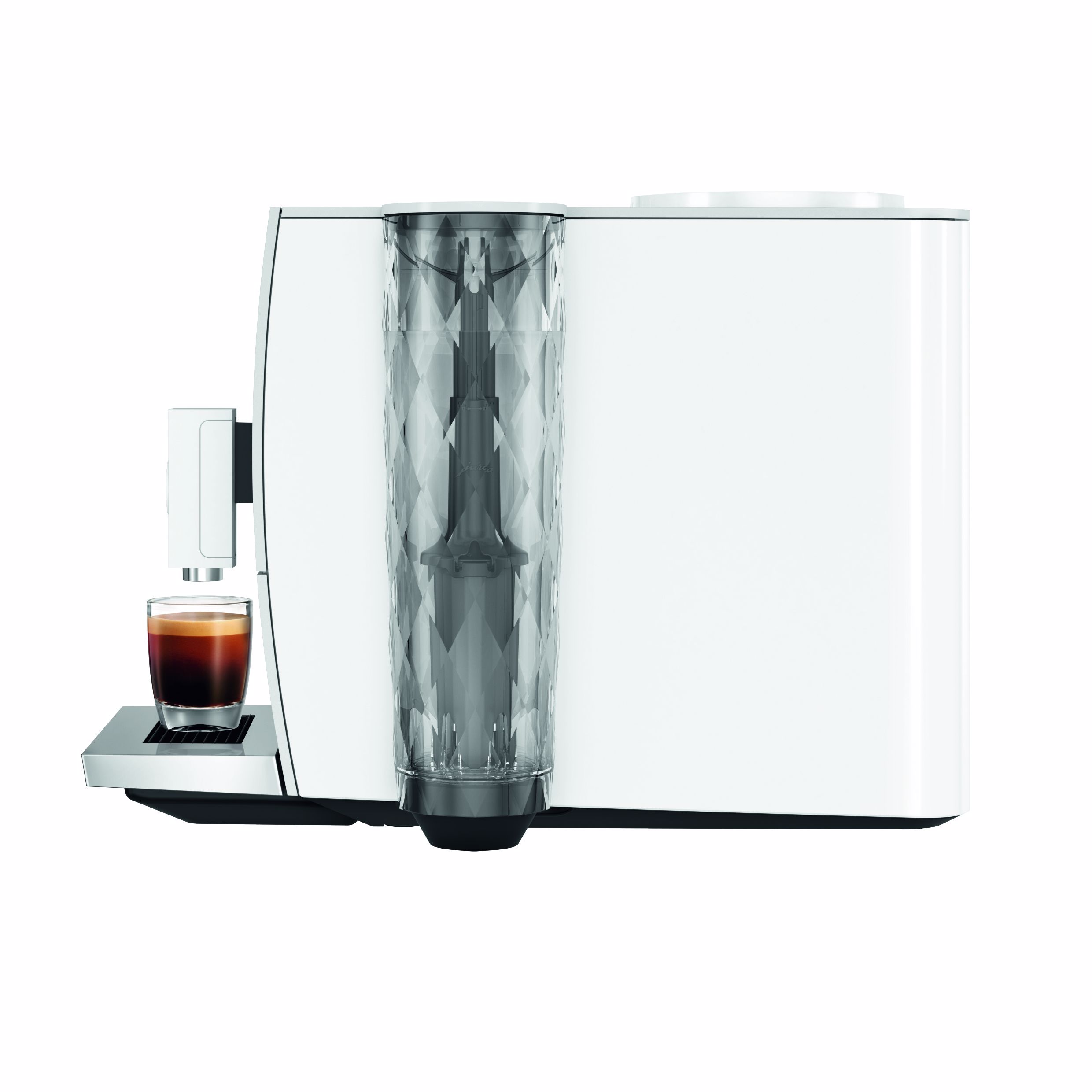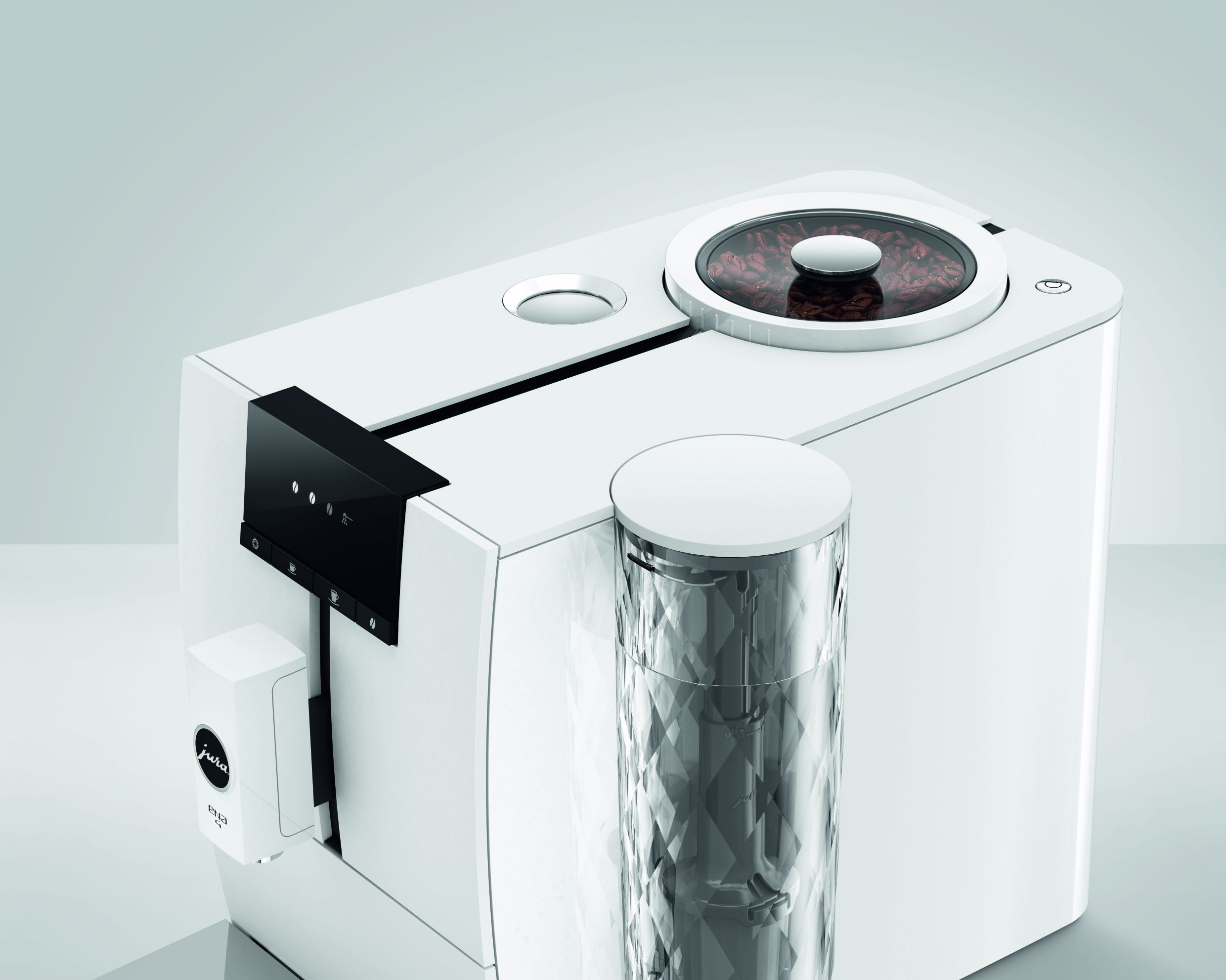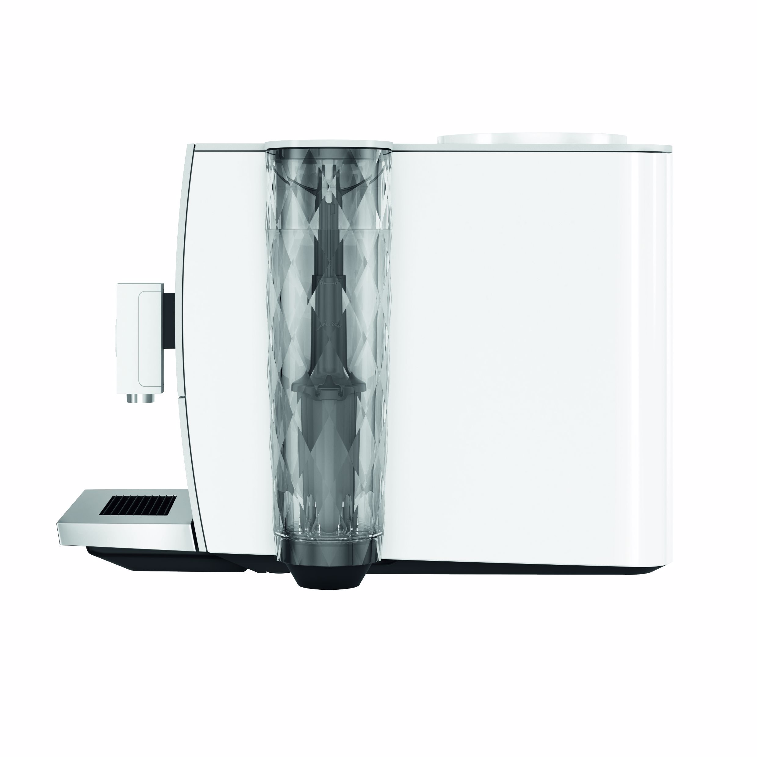 JURA ENA 4 je široká pouze 27,1 cm, vysoká 32,3 cm a hluboká 44,5 cm. Snadno ji kdekoli umístíte. Zároveň se jedná o kávovar s čistým designem. Vyznačuje se jednoduchou elegancí a válcovitou nádržkou na vodu s diamantovým vzhledem.