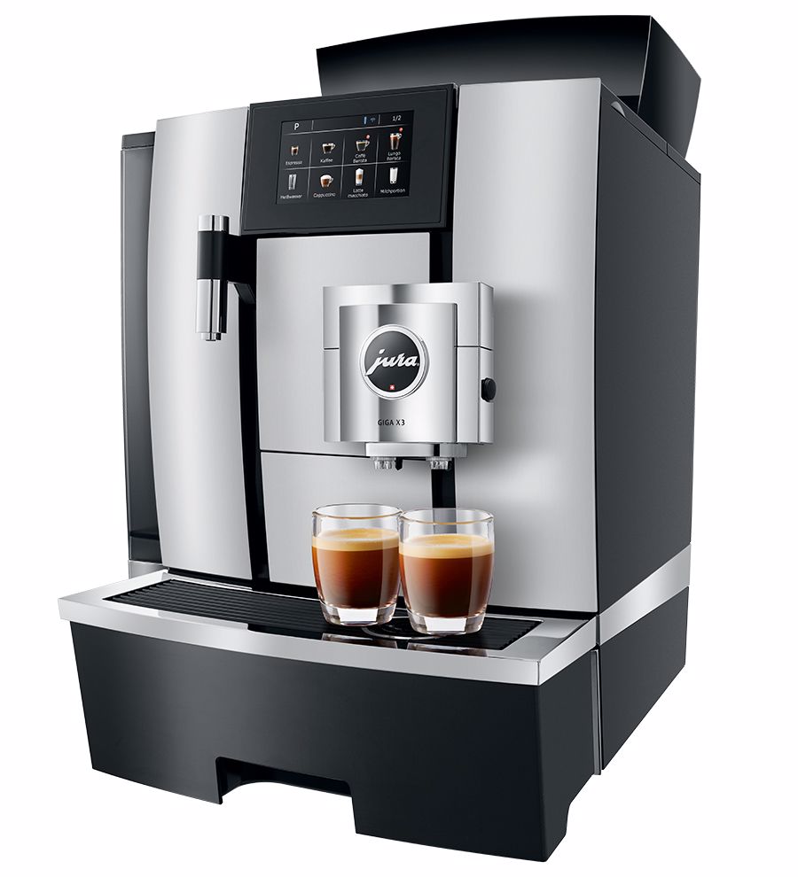 Kávovarem GIGA X3 společnost JURA působivě prokazuje švýcarské inovační schopnosti a profesionalitu do nejmenšího detailu. Kvalitou, funkčností a spolehlivostí přesvědčí všude tam, kde jsou kapacity do 150 šálků kávy na denním pořádku. Ve spojení s maximálním výkonem v každé oblasti je výsledkem technicky špičkový a plně automatický kávovar, který je ideálně uzpůsobený požadavkům velkých kanceláří, oblasti snídaní, seminářů a konferencí včetně samoobslužných zón.
