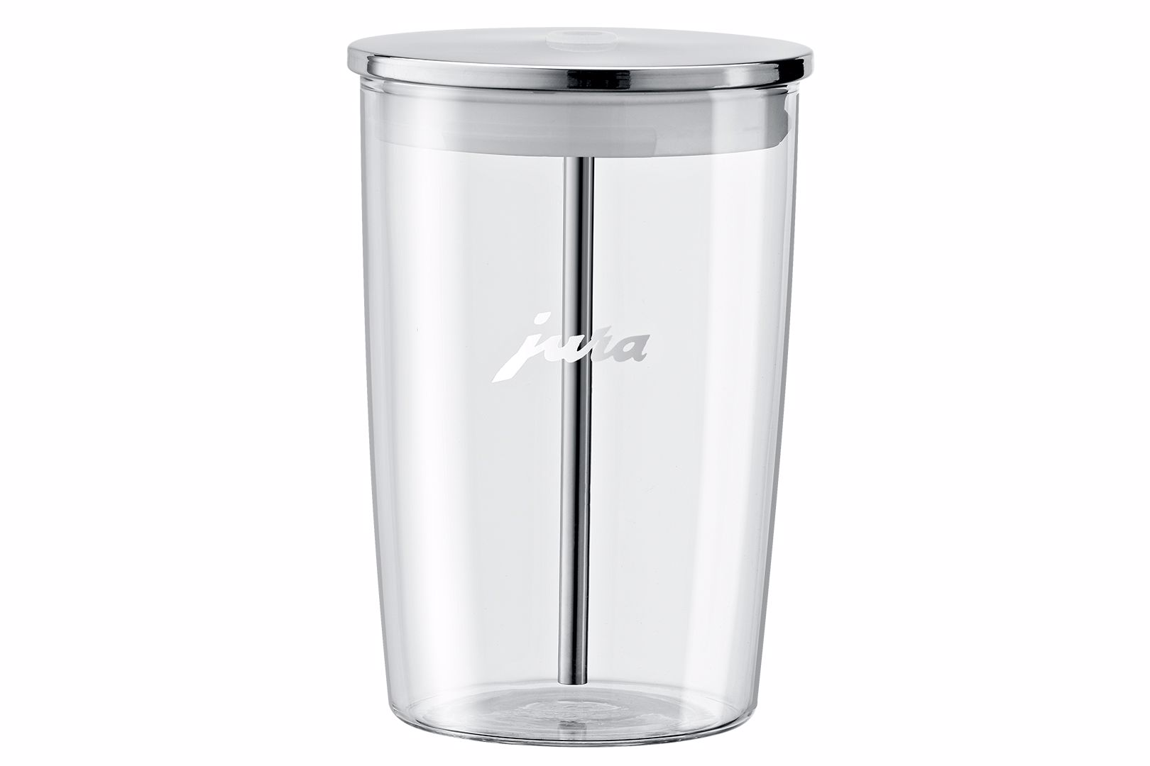 Skleněná nádoba na mléko je nepostradatelným doplňkem pro všechny milovníky kávy, kteří svou rodinu a hosty čas od času rádi rozmazlují módními nápoji jako je flat white, latte macchiato nebo cappuccino. Perfektně sladěná s typickými liniemi designu značky JURA, jednoduchá na skladování v lednici a připravená na připojení ke kávovaru dle potřeby. Trubička na nasávání mléka je připojena ve správné výšce, a proto se mléko s lehkostí nasaje a napění. Nádoba má objem 0,5 litru a je vhodná pro mytí v myčce na nádobí.