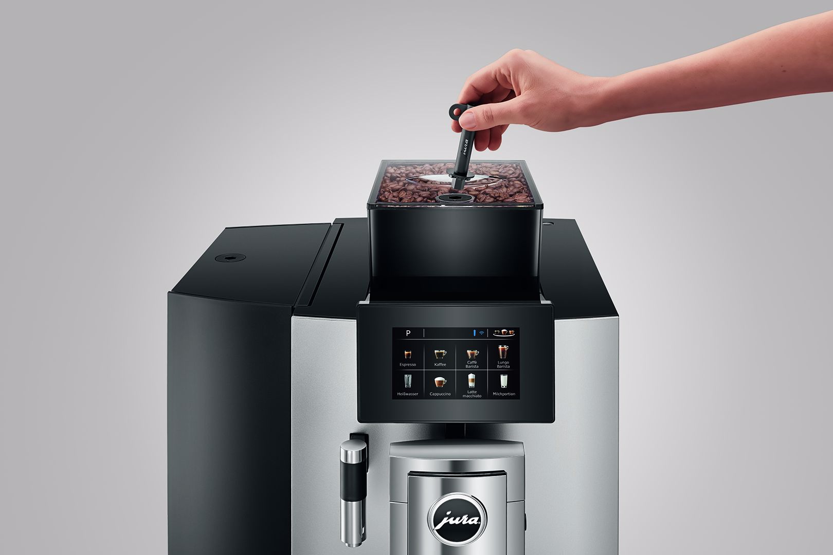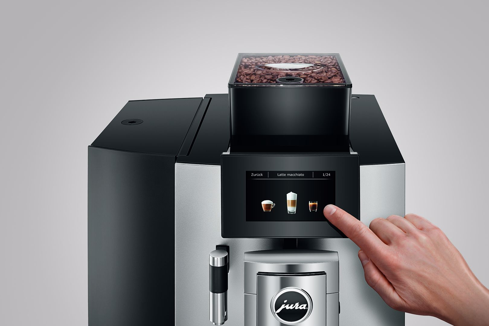 O vždy perfektní výsledek mletí a zvýšení aroma o 12,2 %* se postará špičková inovace: Professional Aroma Grinder. Díky funkci One-Touch-Lungo dokáže překvapit dokonce i přípravou caffè barista a lungo barista. Navíc poskytuje různé stupně teploty horké vody, což ocení zejména milovníci čaje. Důkladně provedená, výškově stavitelná kombinovaná tryska naplní po stisknutí tlačítka šálky nebo sklenice podle volby jednou či dvěma kávovými specialitami současně. Ovládání prostřednictvím barevného dotykového displeje velikosti 4,3" s vysokým rozlišením je navrženo jako zcela intuitivní.