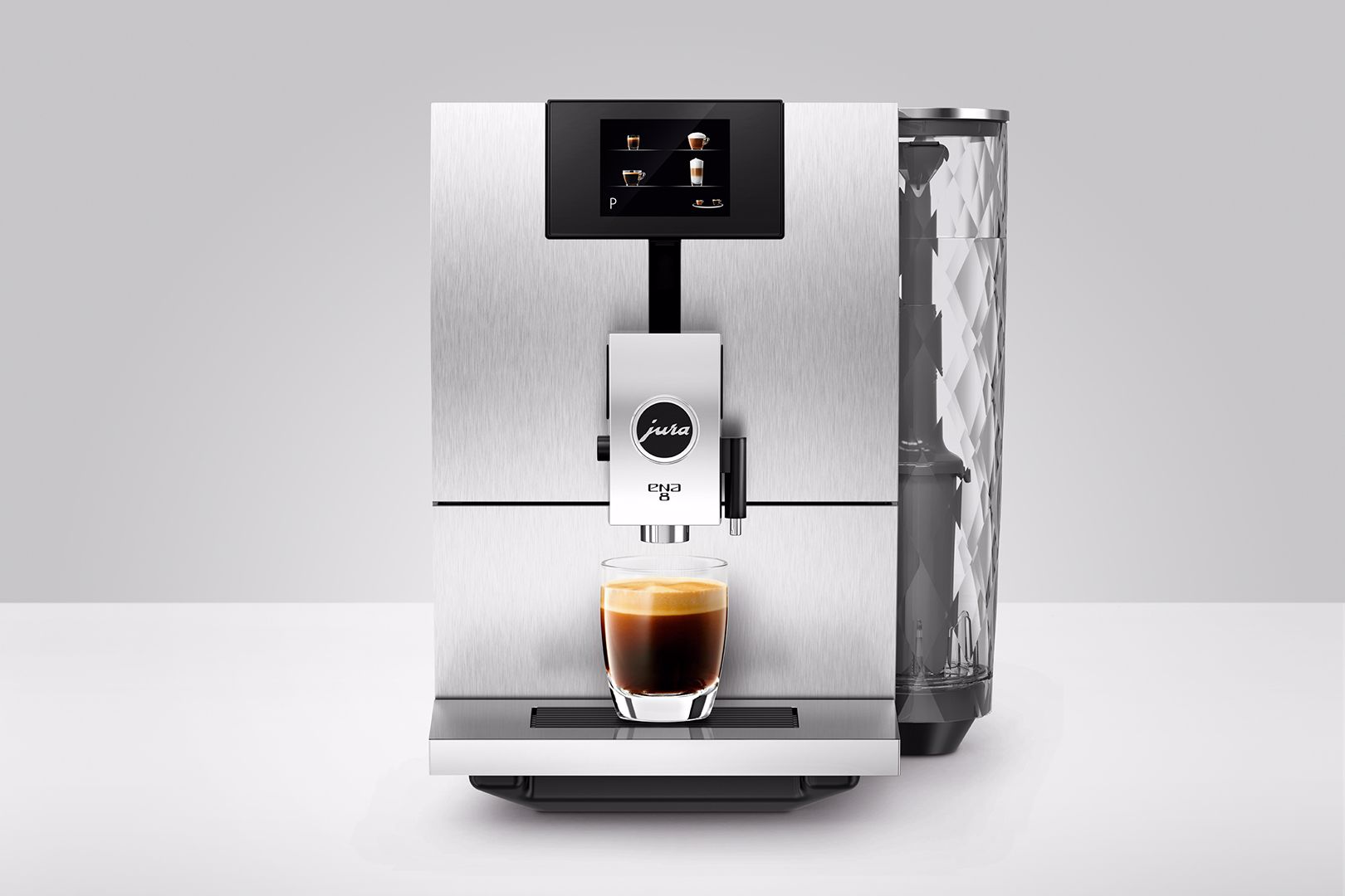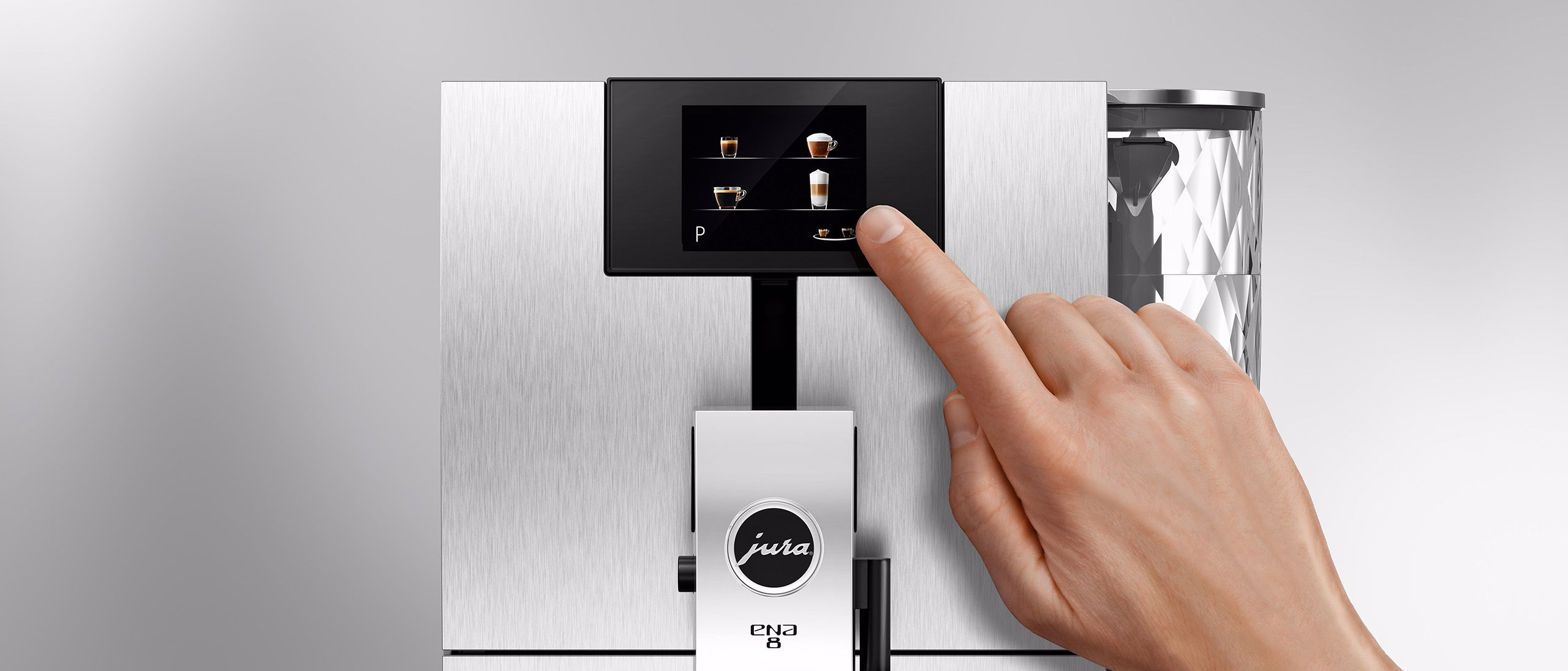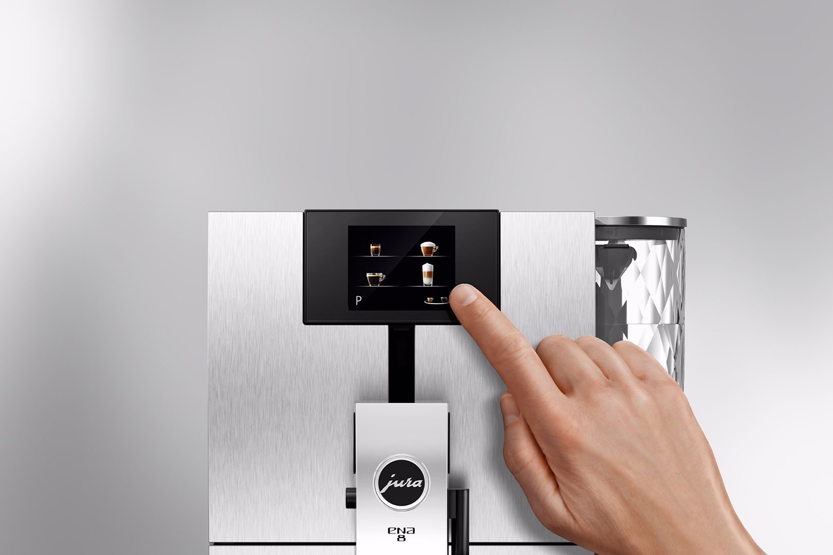 Malý, krásný jednošálkový automatický kávovar se nově prezentuje s obzvlášť snadným ovládáním přes dotykovou obrazovku s umělou inteligencí: Milovníkům kávy tento displej doslova čte každé přání z konečků prstů. Integrovaný algoritmus navíc rozpoznává osobní chuťové preference a automaticky tomu přizpůsobuje počáteční obrazovku.