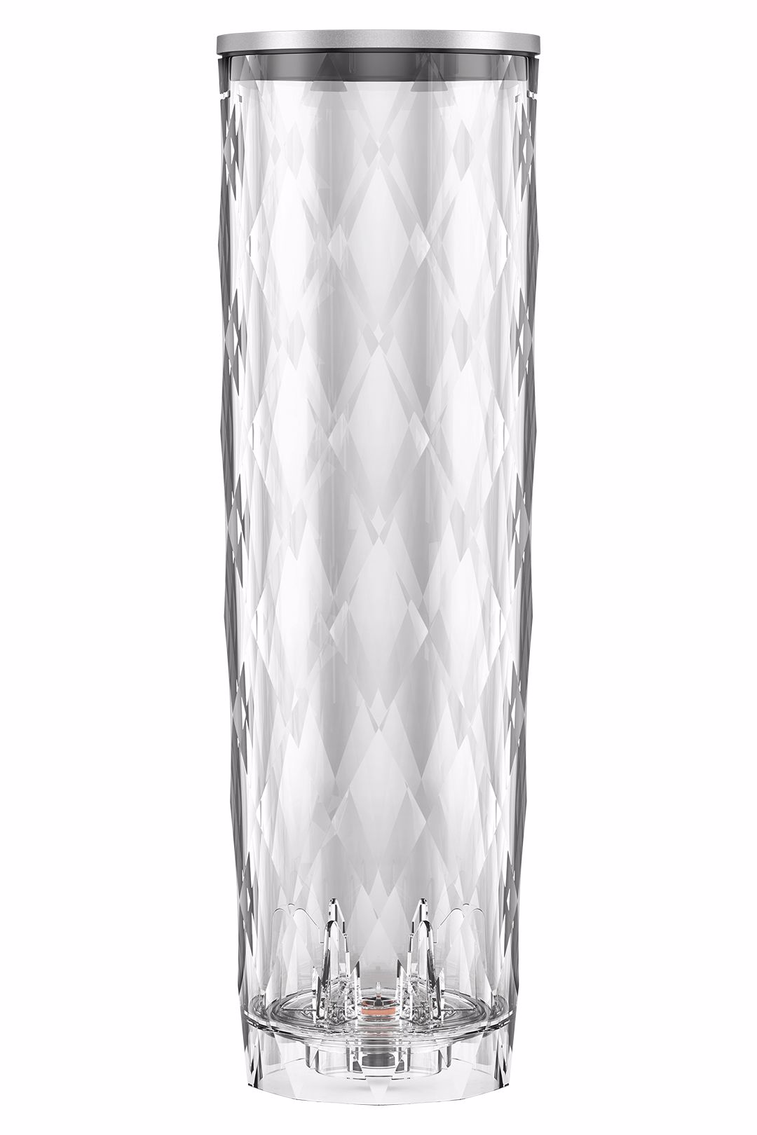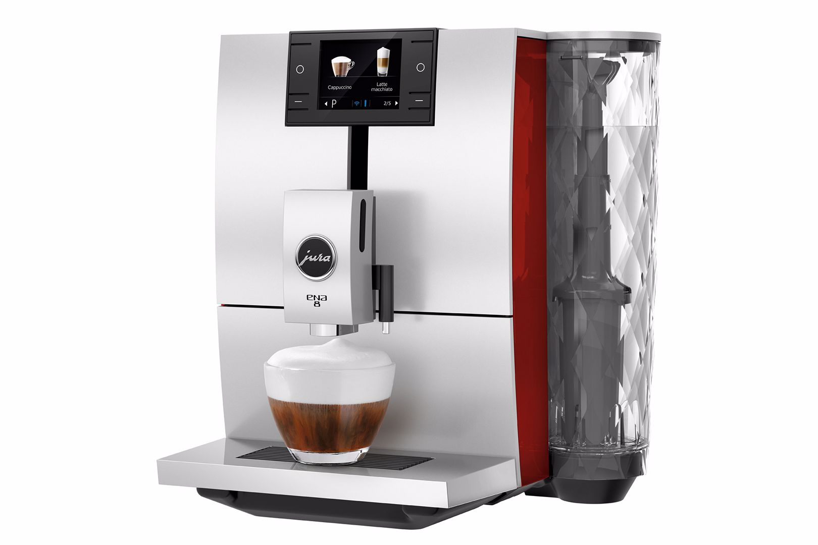 Působivým akcentem zaobleného designového provedení je kulatá nádržka na vodu. Její struktura, ve spojení s válcovým tvarem, je inspirována ušlechtilými křišťálovými karafami.