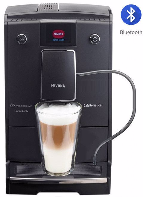 Kávovar je v praktickém černém matném provedení s chromovými detaily, a proto je ideálním doplňkem do každého interiéru. Model NIVONA NICR 759 se představuje jako kávovar s ONE TOUCH ovládáním (vše jedním stiskem), barevným displejem a BLUETOOTH připojením, díky kterému můžete přístroj ovládat pomocí chytrého telefonu nebo tabletu, sledovat statistiky, nebo měnit nastavení nápojů.