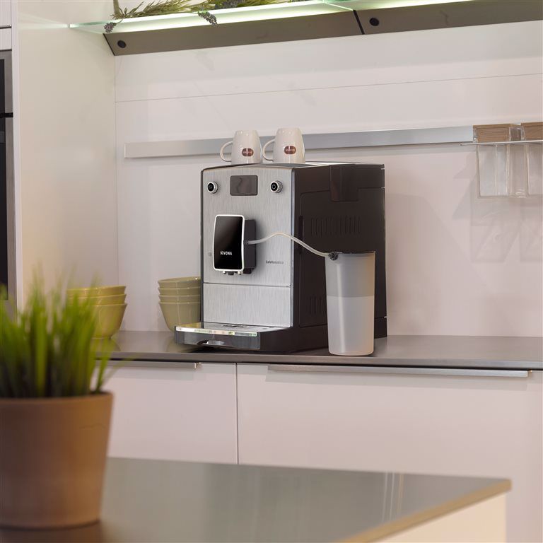 Plně automatický kávovar s nerezovým čelním panelem v broušené úpravě, která je odolná vůči zanechávání otisků prstů. České menu, snadná OneTouch obsluha pomocí kruhového voliče, automatický kapučinátor v jedné hlavě s tryskami na kávu (nemusíte přesouvat sklenku), automatický systém čištění mléčných cest a mnoho dalšího... To je kávovar Nivona NICR 777.