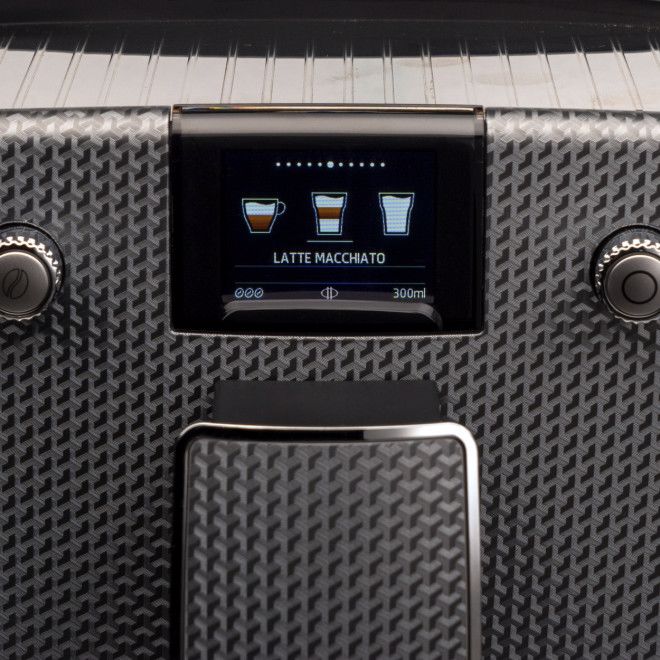 antracit s 3D efektem/chrom │nádoba na vodu 2,2 l │nádržka na kávu cca 250 g │ "moje káva" 5 nápojů │OneTouch │Aroma Balance System (3 profily) │intenzita kávy (5 stupňů) │extrémně tichý mlýnek │displej barevný │ aktivní ohřev šálků │Bluetooth │automatický proplach napěňovací trysky │hlava výpusti až do výšky 14 cm │tlak 15 bar