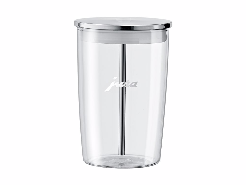 Skleněná nádoba na mléko je nepostradatelným doplňkem pro všechny milovníky kávy, kteří svou rodinu a hosty čas od času rádi rozmazlují módními nápoji jako je flat white, latte macchiato nebo cappuccino. Perfektně sladěná s typickými liniemi designu značky JURA, jednoduchá na skladování v lednici a připravená na připojení ke kávovaru dle potřeby. Trubička na nasávání mléka je připojena ve správné výšce, a proto se mléko s lehkostí nasaje a napění. Nádoba má objem 0,5 litru a je vhodná pro mytí v myčce na nádobí.
